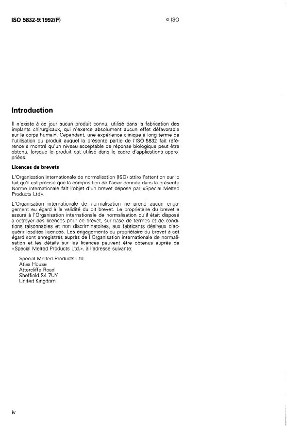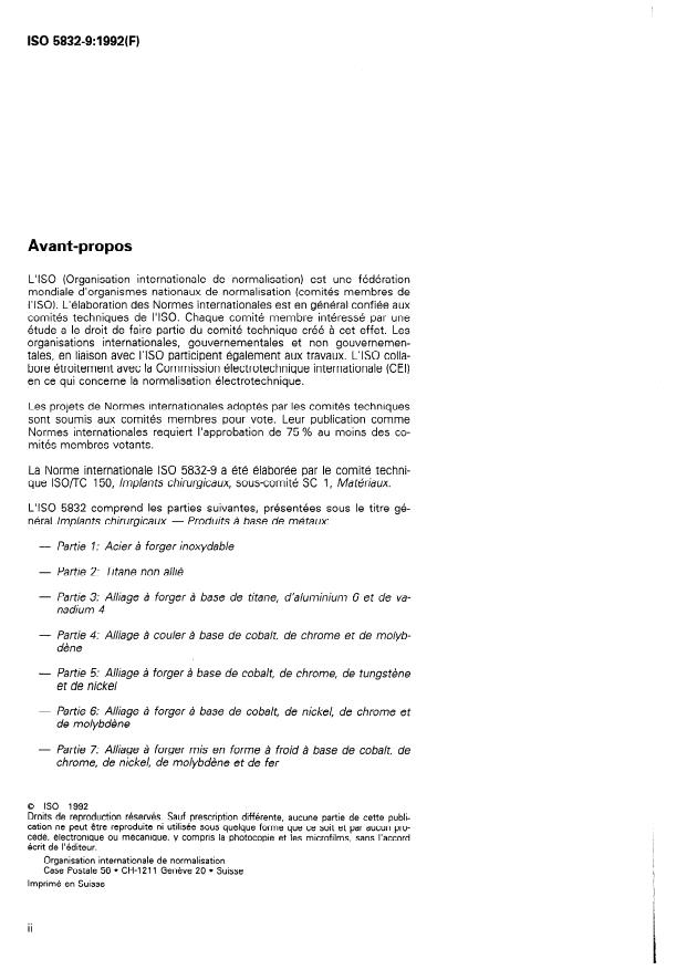 L’ISO 5832 CO mprend les part ies suivantes, prés entées sous le titre gé-