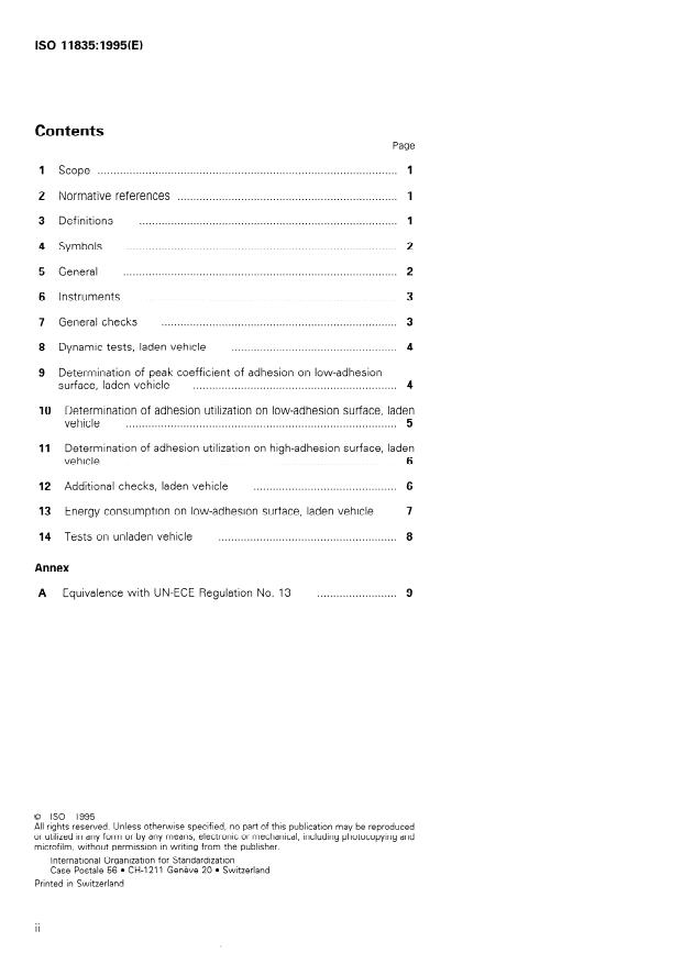 ISO 11835:1995 is a standard published by the International Organization for Standardization (ISO). Its full title is "Road vehicles — Motor vehicles with antilock braking system — Measurement of braking performance". This standard covers: Specifies the test method to be adopted when testing the antilock braking systems on motor vehicles of categories M and N as defined in UN-ECE Regulation No. 13.