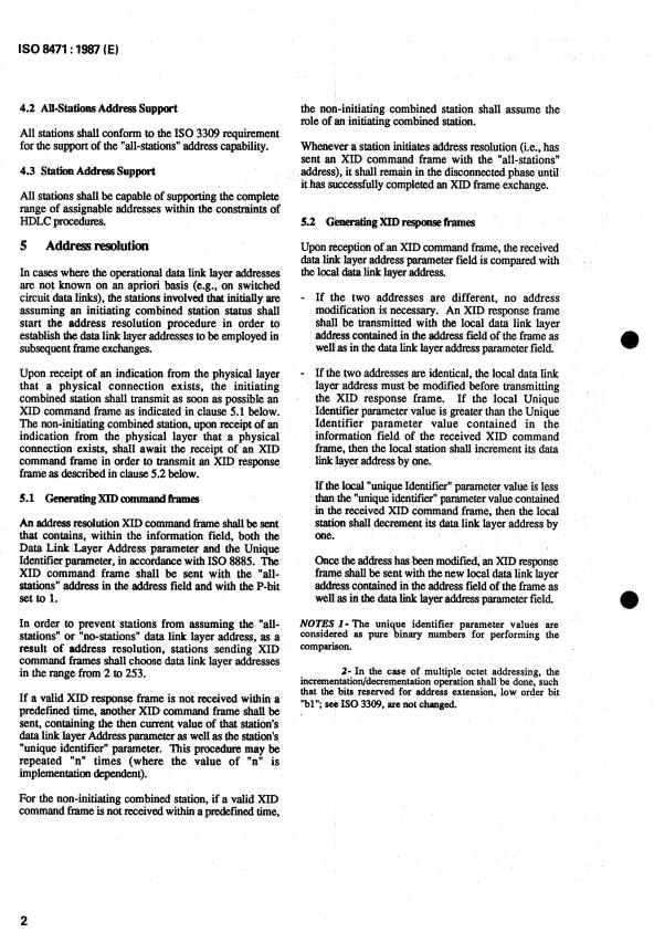ISO 8471:1987 - Information processing systems -- Data communication -- High-level data link control balanced classes of procedures -- Data-link layer address resolution/negotiation in switched environments