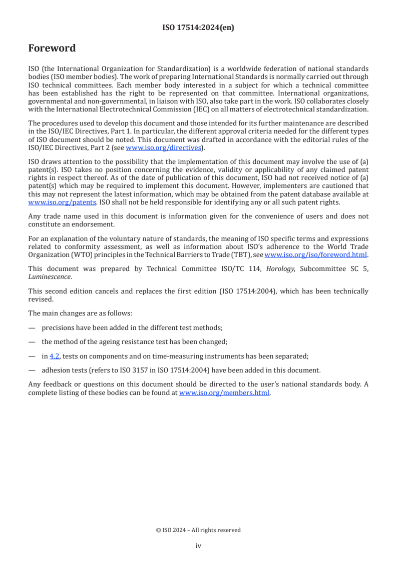 Keywords: ISO 17514:2024, photoluminescent deposits, time‑measuring instruments, luminous intensity, ageing resistance, adhesion test, visibility, legibility, watch standards.