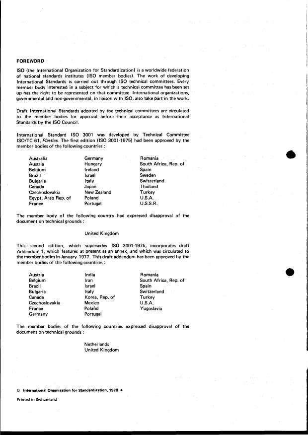 lSO/TC 61, Plastics, The first edition (IS0 3001-1975) had been approved by the