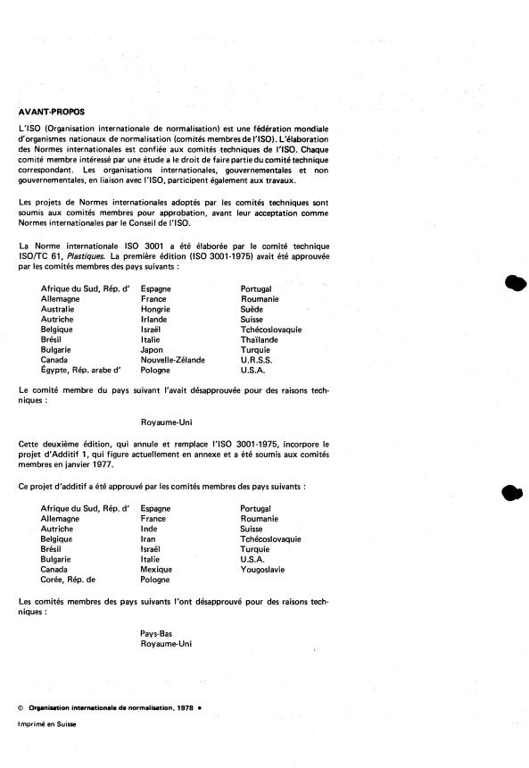 iSO/TC 61, Plastiques. La première édition (IS0 3001-1975) avait été approuvée