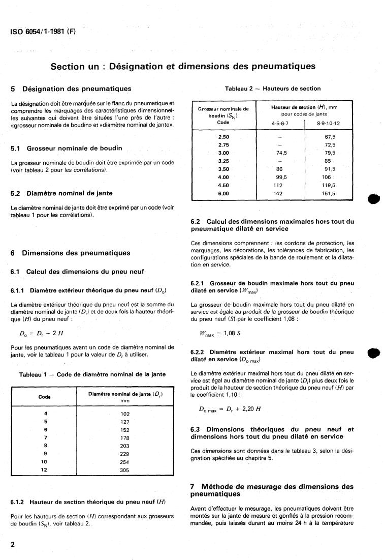 Section un : Désignation et dimensions des pneumatiques