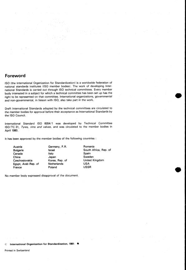 ISO 6054-1:1981 is classified under the following ICS (International Classification for Standards) categories: 83.160.10 - Road vehicle tyres. The ICS classification helps identify the subject area and facilitates finding related standards.