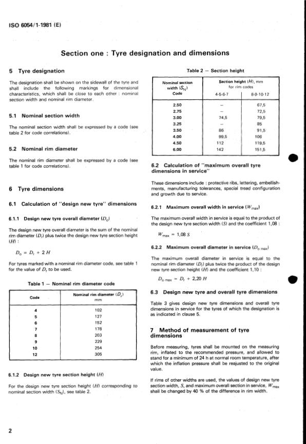 Section one : Tyre designation and dimensions