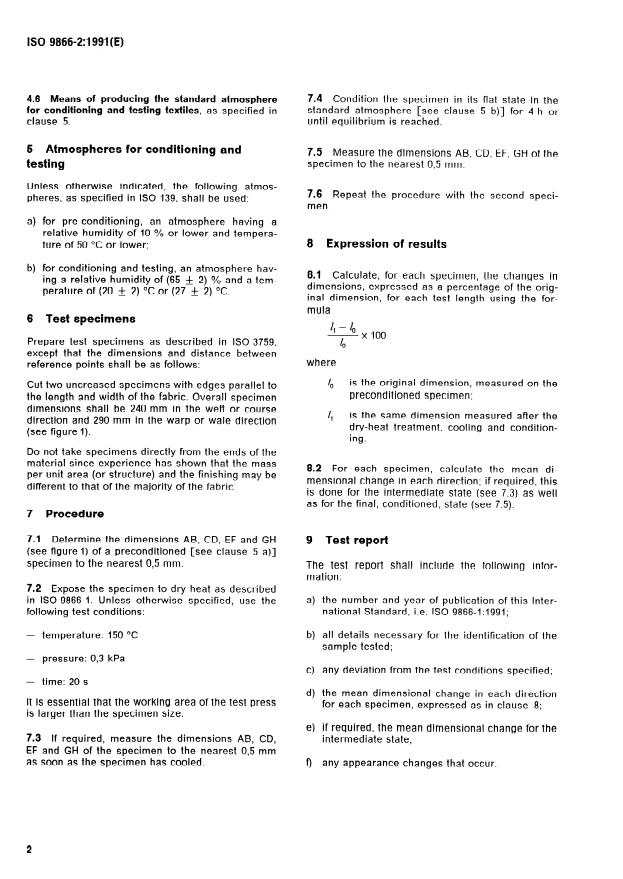 Keywords: ISO 9866-2:1991, textiles, dry heat, low pressure, dimensional change, fabric testing, dimensional stability, textile testing method, conditioning atmospheres, quality control.