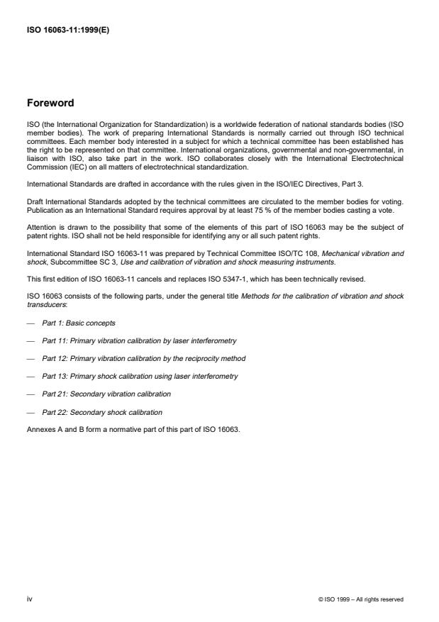 - Other parts include reciprocity and shock calibration methods (e.g., ISO 16063-12, ISO 16063-13) which complement laser interferometry procedures.