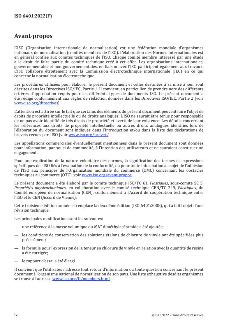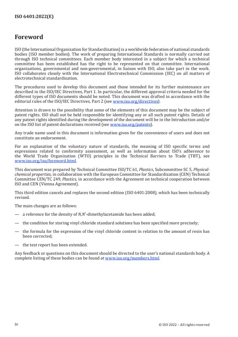 ISO 6401:2022 - Plastics — Poly(vinyl chloride) — Determination of residual vinyl chloride monomer using gas-chromatographic method Released:12. 01. 2023