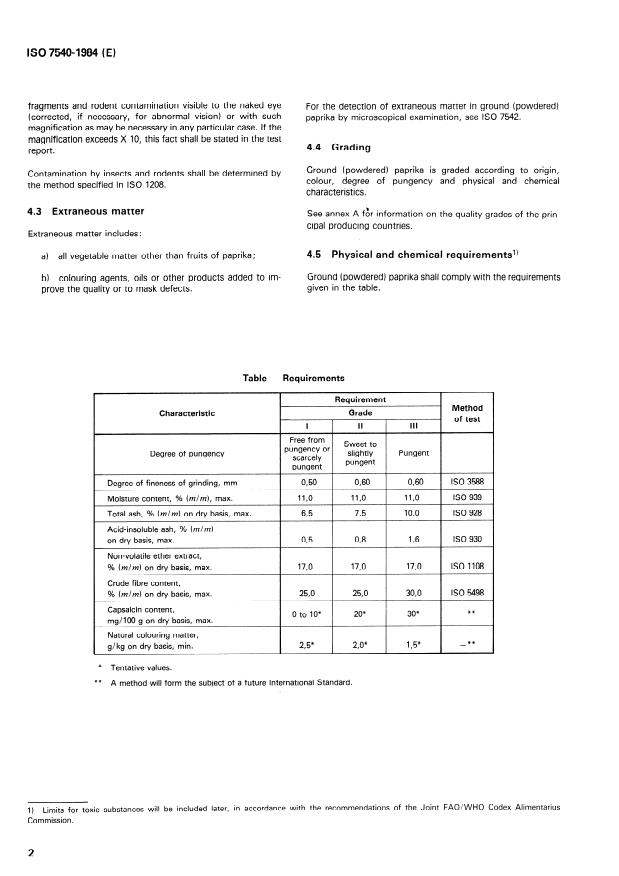 IS0 7542, Ground (powdered) paprika (Capsicum annuum Lin- Ground (powdered) paprika shall be free from living insects and