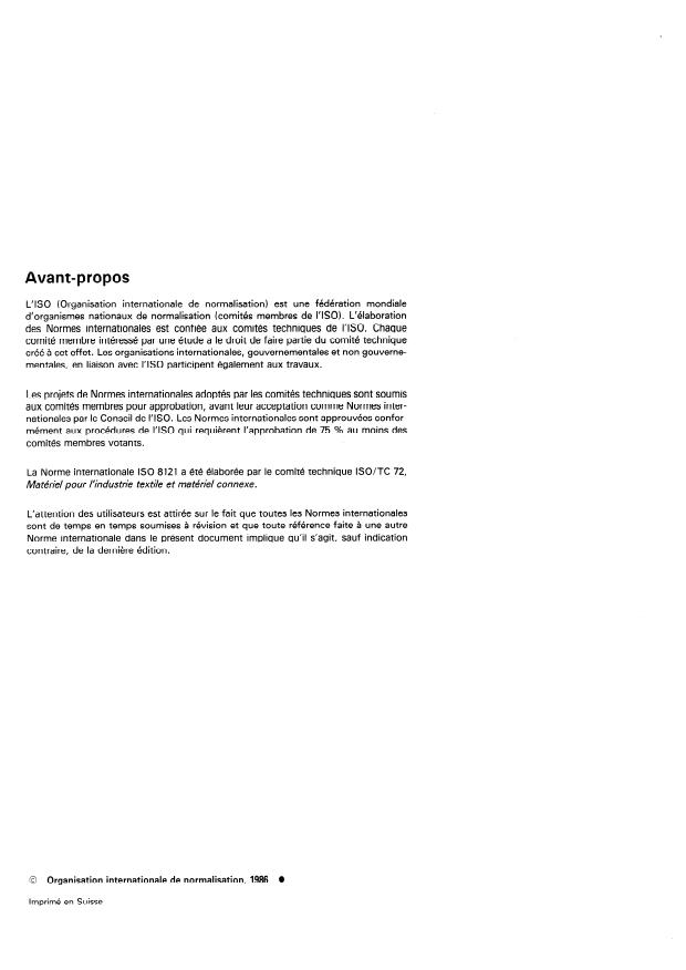 La Norme internationale ISO 8121 a été élaborée par le comité technique ISO/TC 72,