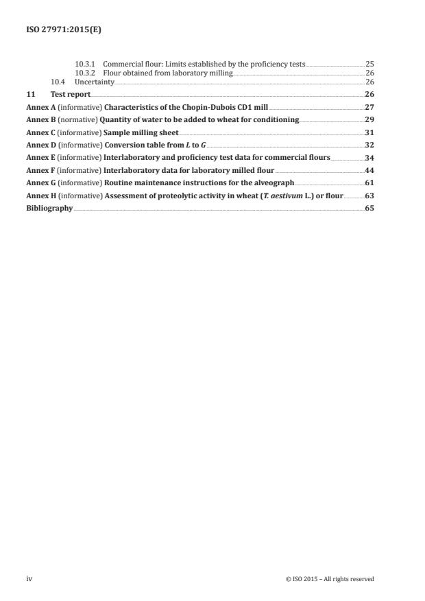 ISO 27971:2015 specifies a method of determining, using an alveograph, the rheological properties of different types of dough obtained from common wheat flour (Triticum aestivum L.) produced by industrial milling or laboratory milling.