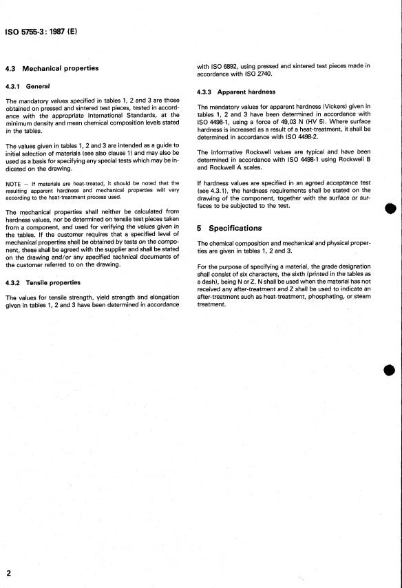 ISO 5755-3:1987 - Sintered metal materials -- Specifications