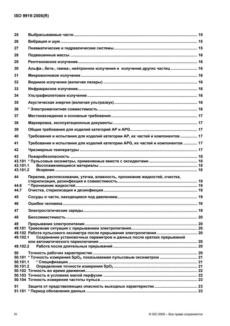 ISO 9919:2005 is a standard published by the International Organization for Standardization (ISO). Its full title is "Medical electrical equipment — Particular requirements for the basic safety and essential performance of pulse oximeter equipment for medical use". This standard covers: For the purposes of ISO 9919:2005, the Scope given in IEC 60601-1:1988 (Clause 1) applies, except as follows. Amendment (add at the end of 1.1): ISO 9919:2005 specifies particular requirements for the basic safety and essential performance of pulse oximeter equipment intended for use on humans. This includes any part necessary for normal use, e.g. the pulse oximeter monitor, pulse oximeter probe, probe cable extender. These requirements also apply to pulse oximeter equipment, including pulse oximeter monitors, pulse oximeter probes and probe cable extenders, that has been reprocessed. The intended use of pulse oximeter equipment includes, but is not limited to, the estimation of arterial oxygen haemoglobin saturation and pulse rate on patients in healthcare institutions as well as on patients in home care. ISO 9919:2005 is not applicable to pulse oximeter equipment intended for use in laboratory research applications nor to oximeters that requires a blood sample from the patient. ISO 9919:2005 is not applicable to pulse oximeter equipment solely intended for fetal use. ISO 9919:2005 is not applicable to remote or slave (secondary) devices that display SpO2 values that are located outside of the patient environment. The requirements of ISO 9919:2005 which replace or modify requirements of IEC 60601-1:1988 and its Amendments 1 (1991) and 2 (1995) are intended to take precedence over the corresponding general requirements.