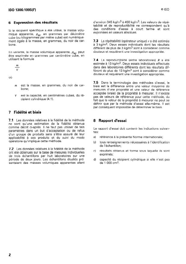 ISO 1306:1995 - Ingrédients de mélange du caoutchouc -- Noir de carbone (en granules) -- Détermination de la masse volumique apparente