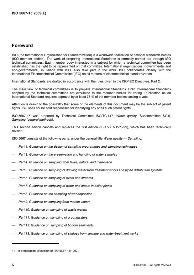 ISO 5667-15:2009 has the following relationships with other standards: It is inter standard links to ISO 5667-15:1999. Understanding these relationships helps ensure you are using the most current and applicable version of the standard.