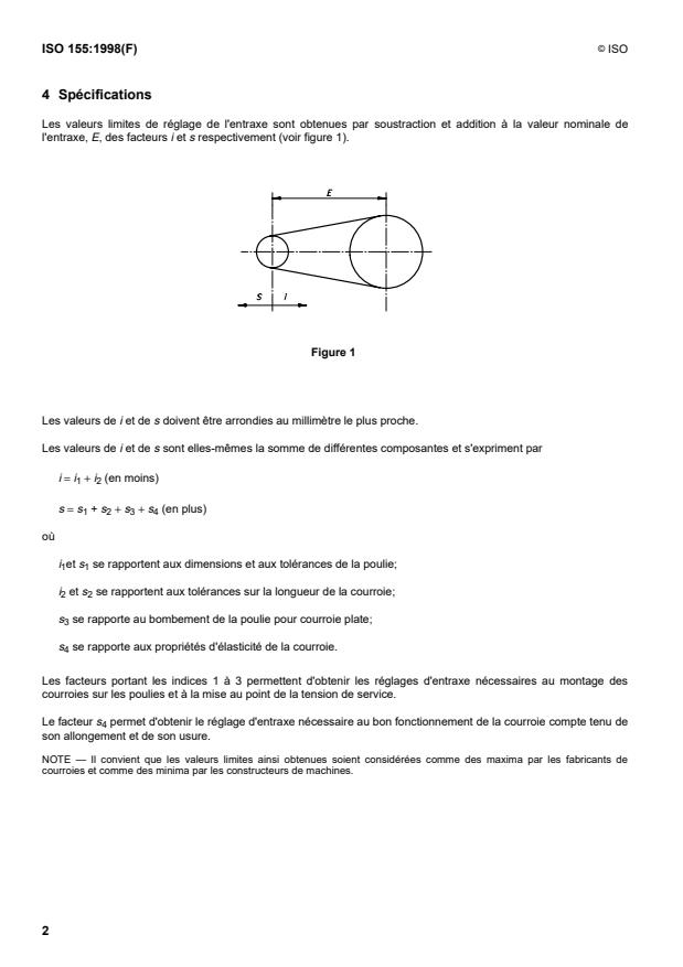 ISO 155:1998 - Transmissions par courroies -- Poulies -- Limites de réglage d'entraxe
