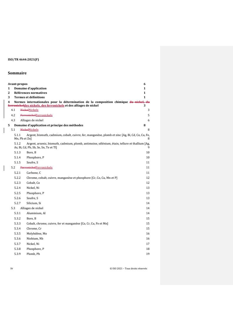 REDLINE ISO/TR 4644:2021 - Nickels, ferronickels and nickel alloys — Standards for the determination of chemical composition Released:9/28/2021