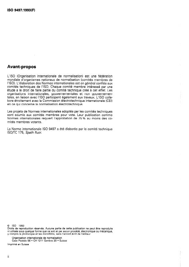 ISO 9497:1993 is a standard published by the International Organization for Standardization (ISO). Its full title is "Fluorspar — Experimental methods for evaluation of quality variation". This standard covers: Specifies experimental methods for the evaluation of quality variation of fluorspar lots from the same source. These methods are to be used in conjunction with the sampling procedures specified in ISO 8868.
