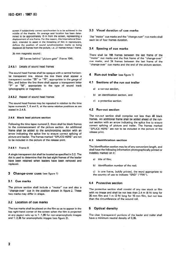 ISO 4241:2001 - Cinematography — Theatre projection leader, trailer and cue marks — Specifications - Effective Date