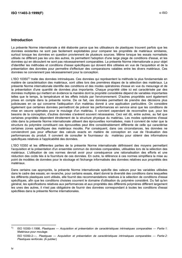 ISO 11403-3:1999 - Plastiques -- Acquisition et présentation de données multiples comparables