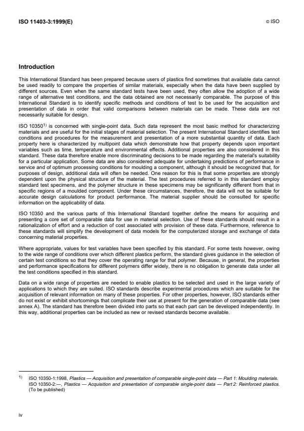 ISO 11403-3:1999 - Plastics -- Acquisition and presentation of comparable multipoint data