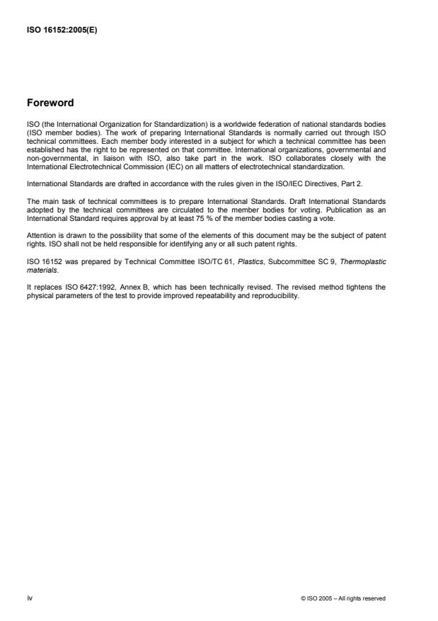 ISO 16152 was prepared by Technical Committee ISO/TC 61, Plastics, Subcommittee SC 9, Thermoplastic