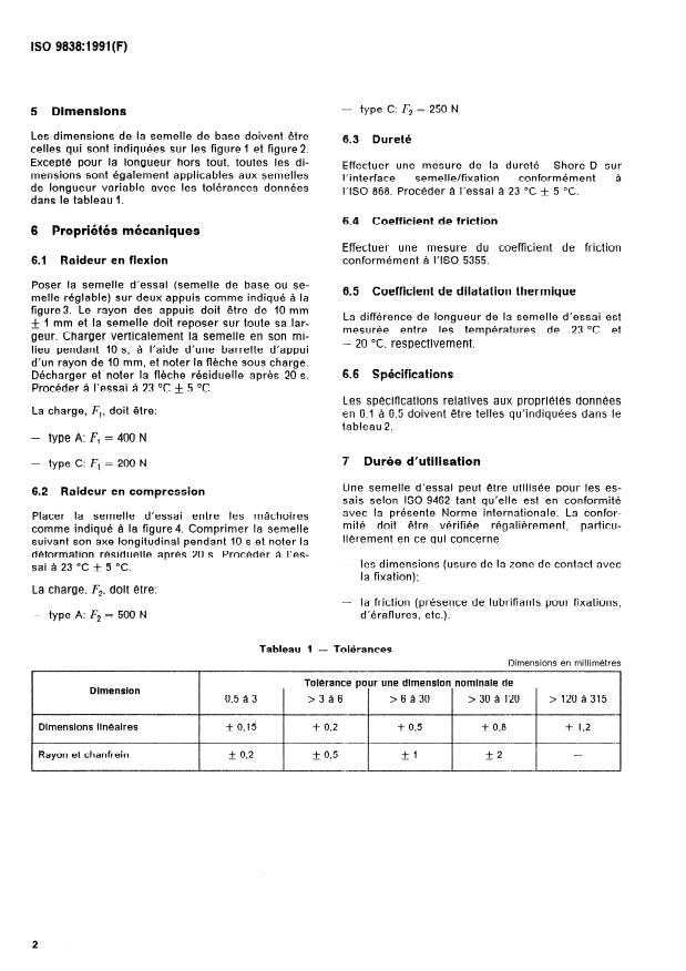 ISO 9838:1991 - Fixations de skis alpins -- Semelles d'essai pour les essais de fixations de skis