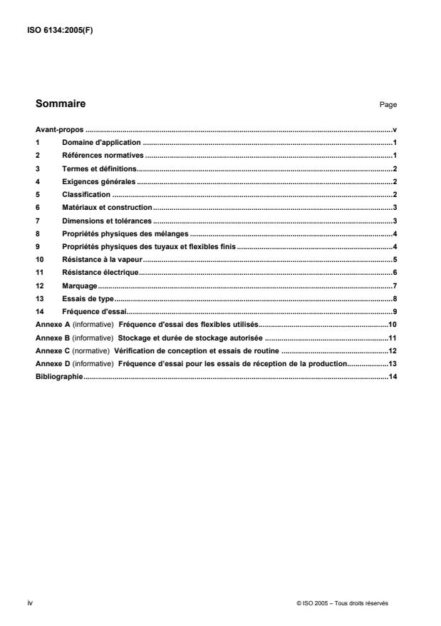 L'ISO 6134:2005 spécifie les exigences relatives à deux types de tuyaux et de flexibles en caoutchouc, à basse pression avec une pression de service maximale de 6 bar et à haute pression avec une pression de service maximale de 18 bar, et aux raccords de tuyaux en métal, conçus pour véhiculer la vapeur saturée et le condensat d'eau chaude. Chaque type est divisé en deux classes: une classe avec revêtement résistant à l'huile et une autre avec revêtement non résistant à l'huile. Des informations sont aussi données sur la fréquence des essais des flexibles en cours d'utilisation ou de stockage.