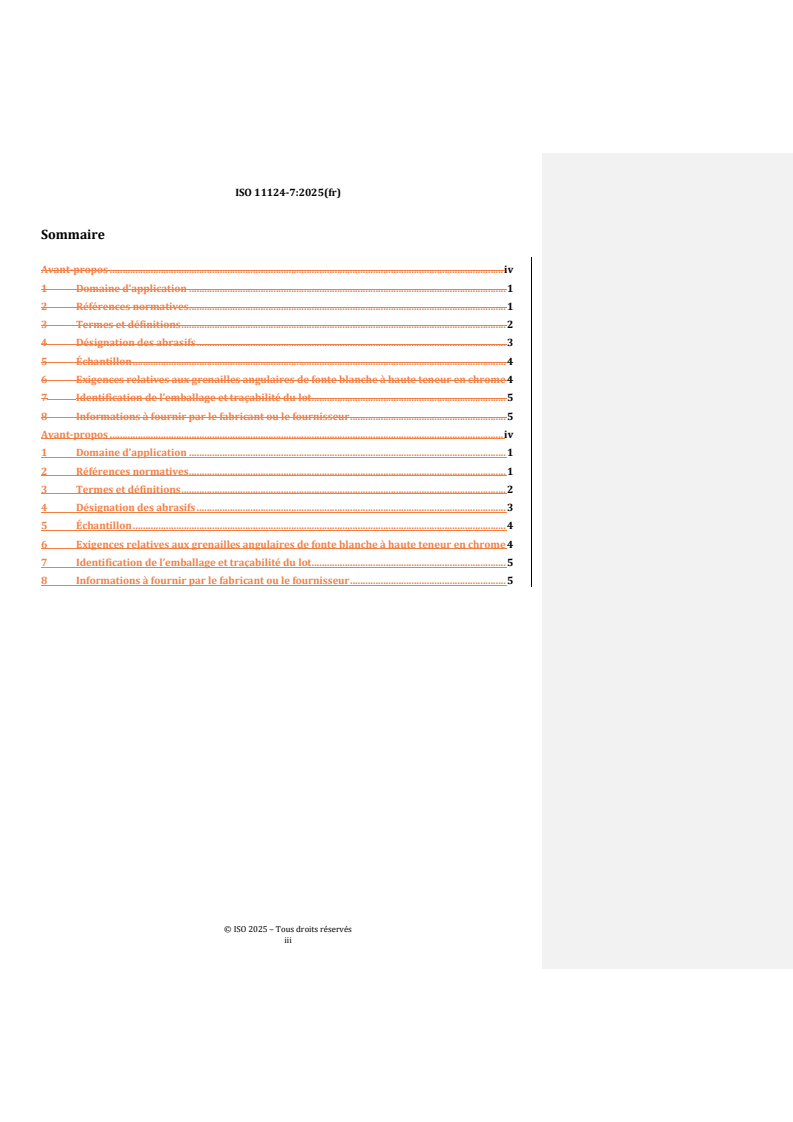 REDLINE ISO 11124-7:2025 - Préparation des subjectiles d'acier avant application de peintures et de produits assimilés — Spécifications des abrasifs métalliques destinés au décapage par projection — Partie 7: Grenailles angulaires de fonte blanche à haute teneur en chrome Released:9. 09. 2025