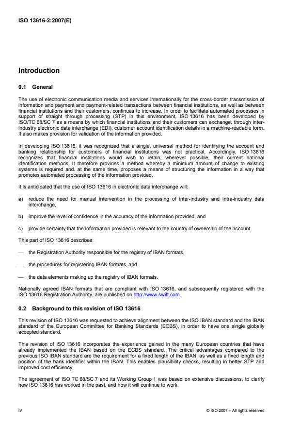 This revision of ISO 13616 was requested to achieve alignment between the ISO IBAN standard and the IBAN
