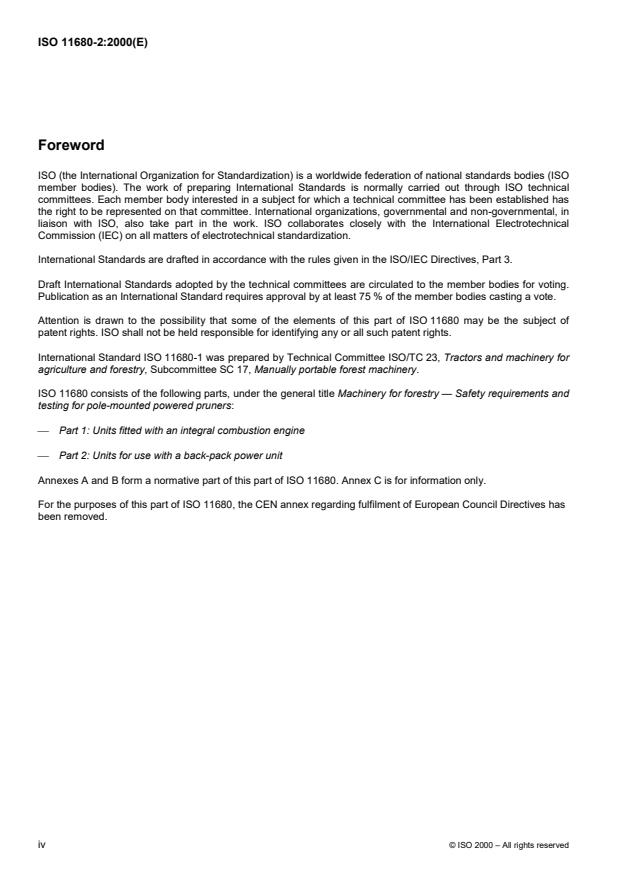 ISO 11680-2:2000 - Machinery for forestry -- Safety requirements and testing for pole-mounted powered pruners