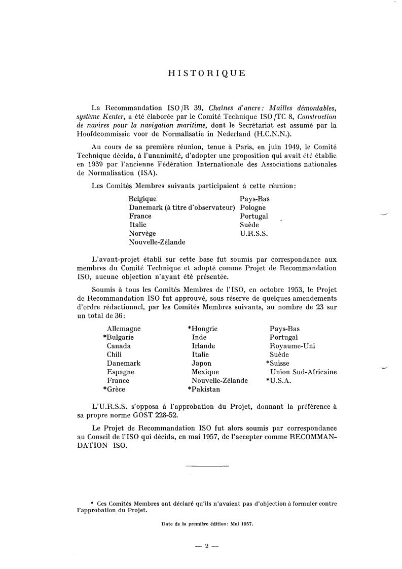 La Recommandation IS0 /R 39, Chaînes d’ancre : Mailles démontables,