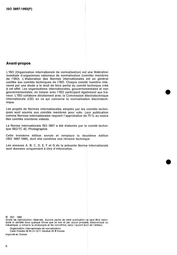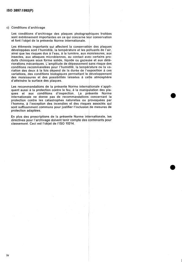 ISO 3897:1992 - Photographie -- Plaques photographiques développées -- Directives pour l'archivage