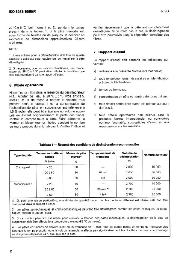 prescrit dans le tableau 1. Si la pâte trempée est désintégrée. Si ce n’est pas le cas, la désintégration
