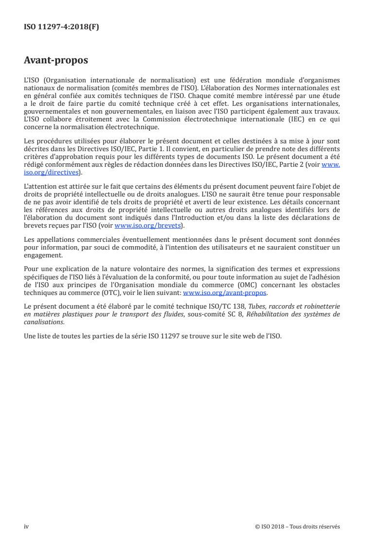 Keywords: ISO 11297-4:2018, CIPP, cured-in-place pipes, plastics piping systems, renovation, underground drainage, sewerage, pressure liners, thermosetting resin.