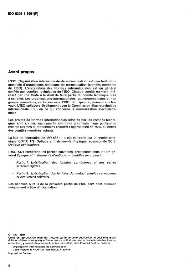 ISO 8321-1:1991 - Optique et instruments d'optique -- Lentilles de contact