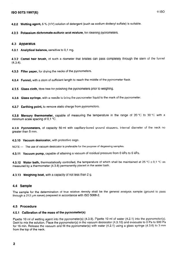 ISO 5072:1997 is a standard published by the International Organization for Standardization (ISO). Its full title is "Brown coals and lignites — Determination of true relative density and apparent relative density". This standard covers: Brown coals and lignites — Determination of true relative density and apparent relative density