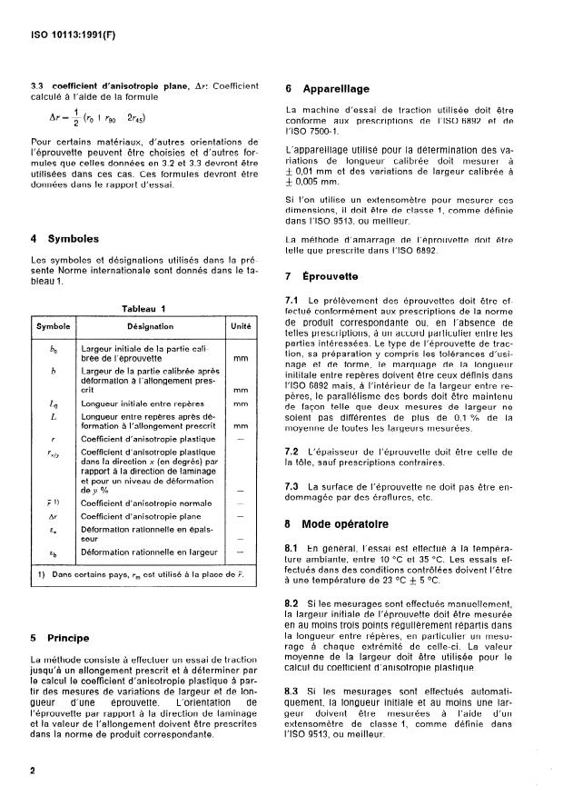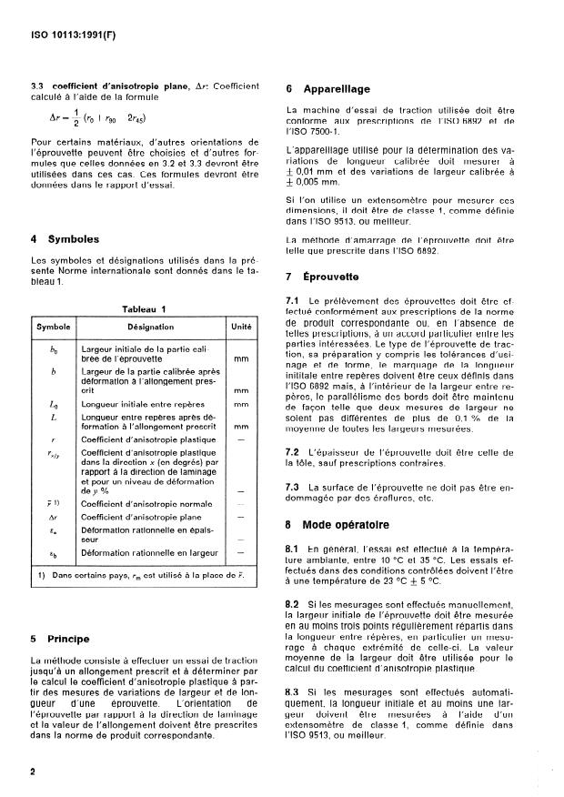 ISO 10113:1991 - Matériaux métalliques -- Tôles et bandes -- Détermination du coefficient d'anisotropie plastique