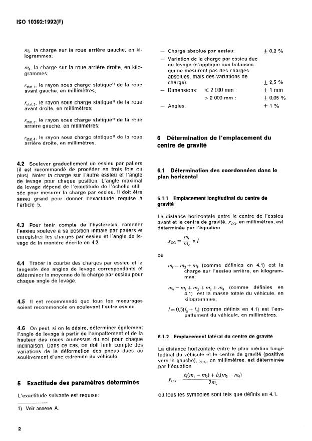 ISO 10392:1992 - Vehicules routiers a deux essieux -- Détermination du centre de gravité