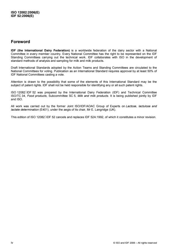 ISO 12082⎪IDF 52 подготовлен Техническим комитетом ISO/TC 34, Пищевые продукты, Подкомитетом