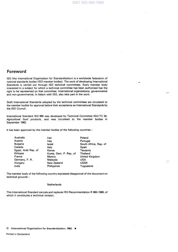 Ta slovenski standard je istoveten z: ISO 660:1983