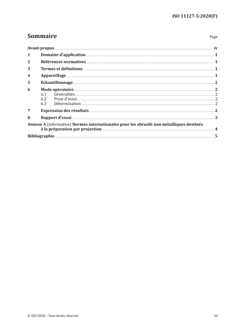 ISO 11127-5:2020 - Préparation des subjectiles d'acier avant application de peintures et de produits assimilés -- Méthodes d'essai pour abrasifs non métalliques destinés à la préparation par projection