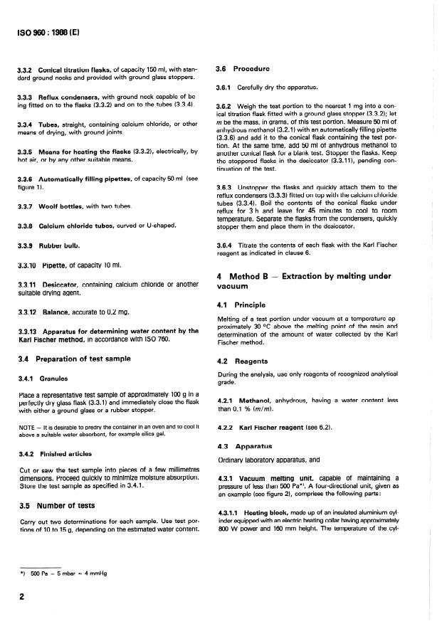 ISO 960:1988 - Plastics -- Polyamides (PA) -- Determination of water content
