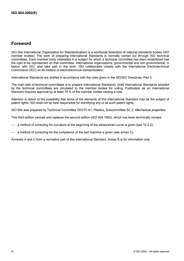 Keywords: ISO 604:2002, plastics compressive properties, compressive strength, compressive modulus, compression testing, specimen dimensions, buckling, test speeds, machine compliance.