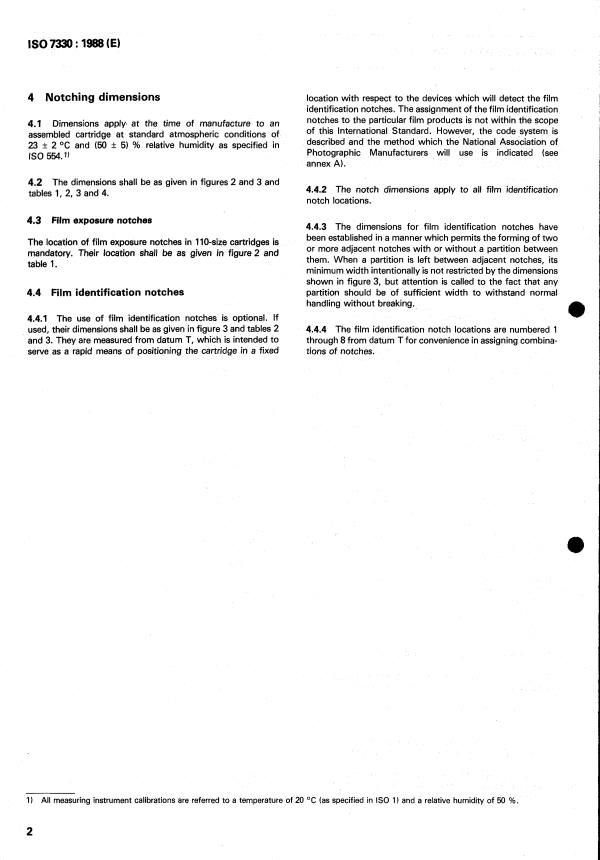 ISO 7330:1988 - Photography — 110-size cartridges — Location and dimensions of film exposure and film identification notches Released:7/21/1988