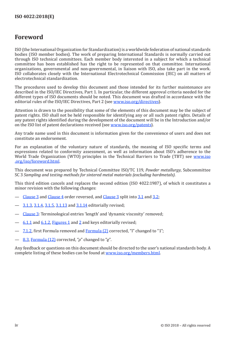 ISO 4022:2018 - Permeable sintered metal materials -- Determination of fluid permeability