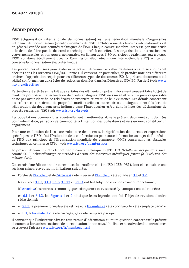 ISO 4022:2018 - Matériaux métalliques frittés perméables -- Détermination de la perméabilité aux fluides