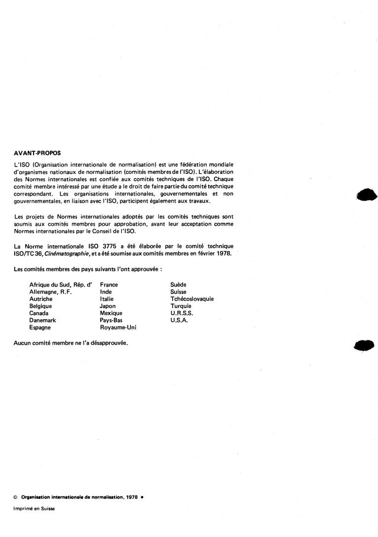ISO/TC 36, Cinématographie, et a été soumise aux comités membres en février 1978.
