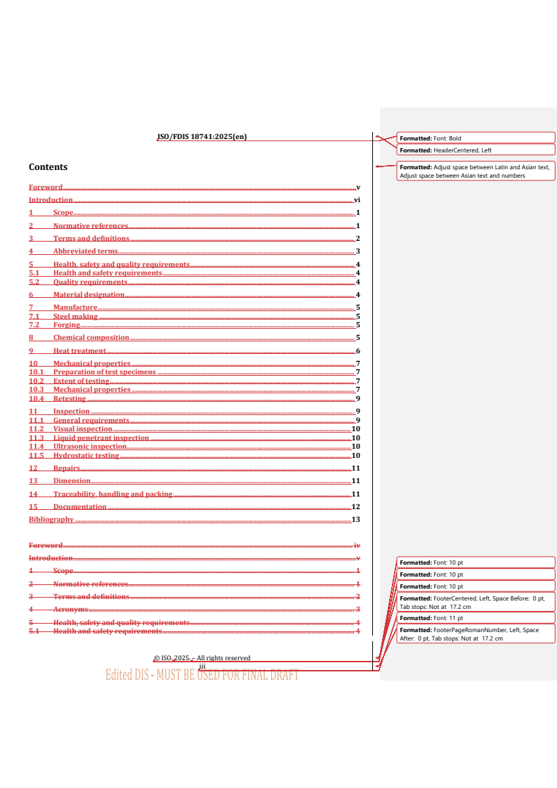 REDLINE ISO/FDIS 18741 - Ship and marine technology — High manganese austenitic steel — Specification for high manganese austenitic steel forgings for cryogenic temperature Released:20. 10. 2025