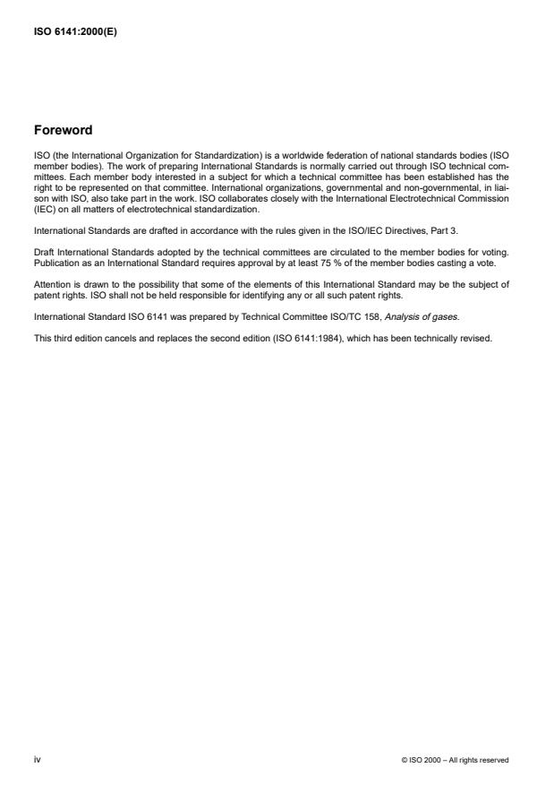 ISO 6141:2000 is a standard published by the International Organization for Standardization (ISO). Its full title is "Gas analysis — Requirements for certificates for calibration gases and gas mixtures". This standard covers: Gas analysis — Requirements for certificates for calibration gases and gas mixtures